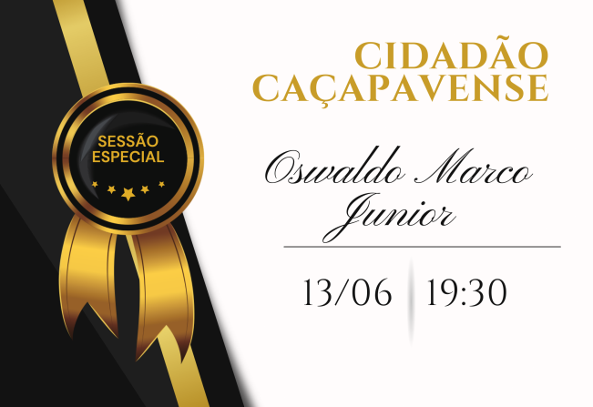 No dia 13 de junho, a Câmara irá homenagear o senhor Oswaldo Marco Junior com o Título de Cidadão Caçapavense. A homenagem é de autoria do vereador Maicon Goiembiesqui.